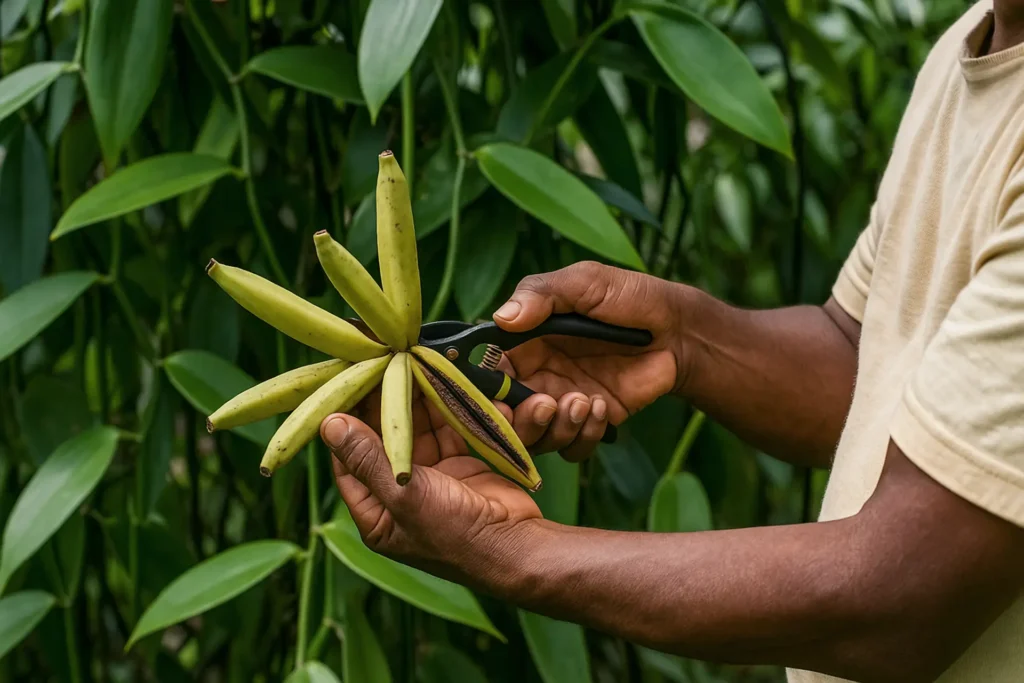 Because Vanilla Cribbiana, like most vanilla orchids, cannot self-pollinate. The natural pollinators (tiny bees of the genus Melipona) are increasingly rare. So farmers must step in at just the right moment, often within a few hours of the flower opening. Each flower remains open for just 8 hours, after which, if not pollinated, it wilts, dies, and drops to the ground. This work is intimate and ancestral. It requires knowledge passed down through generations. A missed day means a missed bean.